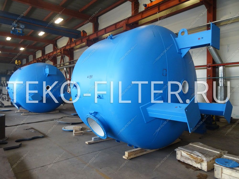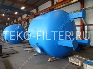 Осветительные вертикальные фильтры диаметром 3400 мм. изготовлены из углеродистой стали и имеют внутреннее антикоррозионное покрытие.